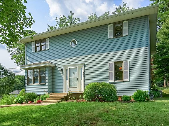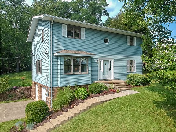 Wonderful two story located on a large private lot! Natural light accents the beautiful open two story foyer! Main floor features the spacious eat in kitchen with new countertops and backsplash, formal dining room, huge living room with decorative stone fireplace and convenient first floor laundry room! Second level boasts the owners suite, walk in closet and the updated full bath with ceramic shower, two additional bedrooms and full bath complete this floor. Game room with custom built in office/desk area! Oversized 1.5 car garage. Entertaining is easy with the back covered porch that overlooks the relaxing yard! Storage Shed! New furnace and central air! Easy access to 376, Airport, Pittsburgh, shopping and restaurants!