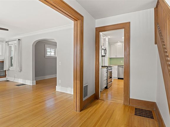 Step into this beautifully maintained 3-bedroom, 1.5-bathroom home that perfectly blends timeless character with modern touches. From the moment you enter, you’re greeted by the warmth of natural woodwork and the stunning quarter-sawn oak floors that flow throughout the main living spaces. Sunlight pours in through the bright windows, highlighting every detail, from the elegant leaded glass accents to the sleek stainless steel appliances nestled in the crisp, white shaker-style cabinetry of the kitchen. Built nearly a century ago, this home radiates the charm of a bygone era while offering thoughtful updates for modern living, such as an added mud room and new 1/2 bath downstairs (2020)! The living room is a cozy retreat, featuring a charming artificial brick fireplace as its centerpiece, flanked by built-in shelves perfect for displaying books, treasures, or photos. The upper level features three spacious bedrooms and a full bathroom designed with functionality in mind. Looking for room to grow? The large, unfinished attic offers endless possibilities for expansion, whether it’s a primary suite, home office, or bonus space. Outside, enjoy the privacy of a mostly fenced backyard – ideal for gatherings or peaceful mornings with a cup of coffee. A detached, one-car garage with a completely repaved driveway (2023) adds convenience and completes the property. Situated in a neighborhood known for its character and charm, this house is the perfect place to call home. **sq footage includes 42sqft patio converted to mudroom and bathroom. Don't miss your chance to see this gem! Showings will begin Friday, January 24th at 9 am. Offers will be reviewed Tuesday, January 28th at 2 pm.