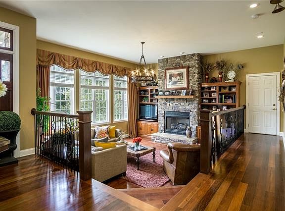 HUGE REDUCTION!!!This dream home with lake views sits on 3.41 acres. Grace the entrance of this beautiful 4 bedroom, 5 bathroom home and be amazed with the open floor plan and spacious rooms. Hardwood floors throughout. Main level features sunken great room with large rock fireplace with gas logs and custom bookcases, one bedroom with full bath, laundry room, kitchen, dinning area and front and back foyer. Kitchen amenities include stainless steel appliances, large kitchen island with granite. The master suite located on the 2nd level features a large walk in closet and bathroom with tile shower, jetted tub, double vanity and linen closet. There are two additional bedrooms with two full baths located on the second level. Home also features a full finished basement, wrap around covered porch and large back deck that overlooks backyard and custom basketball half court. Perfect home for families and entertaining. Located within minutes to Hickory. Must see!! Schedule an appointment today