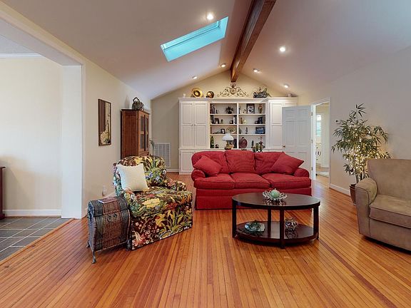 - Recessed Lighting, Vaulted Ceiling(s), High Ceilings, Built-Ins, Bookcases, Sun Room, Ceiling Fan, Floors-Hardwood, Bookcase, Beams