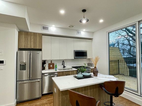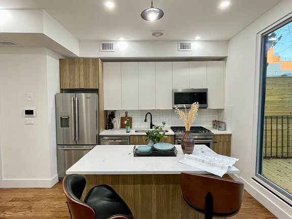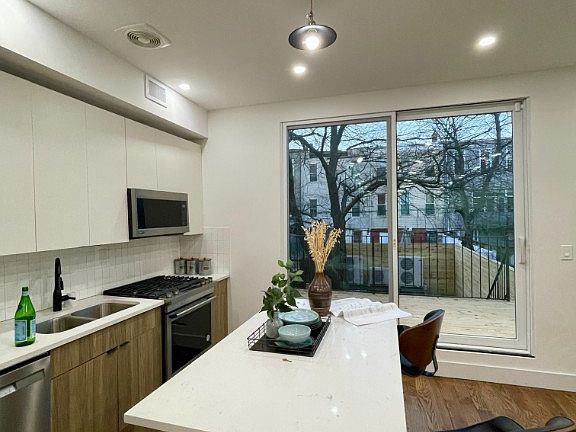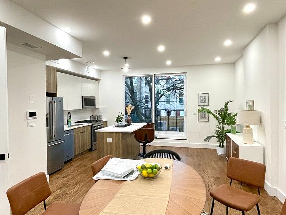 Discover this stunning, brand-new renovated townhouse in the vibrant heart of Bushwick, Brooklyn! This spacious 3-bedroom, 2.5-bathroom home offers a perfect blend of modern luxury and urban charm. Step into an open-concept living area with sleek hardwood floors, large windows, and high ceilings that create an airy, welcoming atmosphere. The chef's kitchen is a dream, featuring top-of-the-line stainless steel appliances, custom cabinetry, and beautiful countertops, perfect for cooking and entertaining. The townhouse offers exceptional outdoor spaces, including a shared backyard with a deck, ideal for relaxing or hosting gatherings. Plus, you'll enjoy your very own private rooftop, where you can soak in sweeping views of the city skyline a perfect spot for sunsets, stargazing, or outdoor dining. Need extra space? The basement with additional 1/2 bathroom is available for rent at an additional charge and offers versatile potential for a home office, storage, or even a gym. The home also comes with central air, in-unit laundry, and plenty of storage throughout. Located just minutes from the neighborhood's eclectic mix of art galleries, trendy bars, restaurants, and cafes, with easy access to public transportation, this townhouse is the perfect blend of style, convenience, and comfort. Don't miss the chance to make this brand-new gem your next home! Square footage is approximate.
