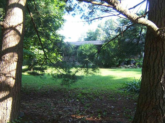 One owner. Large utility room with panty, living room with wood burning fireplace with insert. Covered country front porch. 2 car detached garage with shelving. Playhouse with electric. Fenced. Lots of curb appeal with abundance of trees.