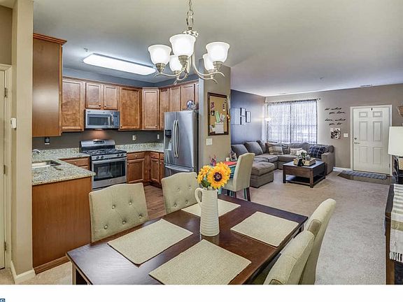Why rent when you can own? This Riverwalk Townhome is even better than new!! It already has stunning upgrades and stylish warm paint colors. Modern open floor plan is sure to impress. Home features spacious living room and stunning kitchen with granite counter tops, stainless steel appliances and wood floor upgrade. First floor has easy access to the garage and huge full bath with stand up shower. Upstairs has 2 generous bedrooms, both with walk in closets, another full bath and laundry closet. Condo fee includes lawn care, snow removal, and access to fitness center, clubhouse and resort style pool. Riverwalk is nestled away on a quiet street close to all major highways (Rt 130, Rt 295, and NJ Turnpike) and shopping. The search is over- nothing to do but pack your bags and move in. Call today to schedule a showing!