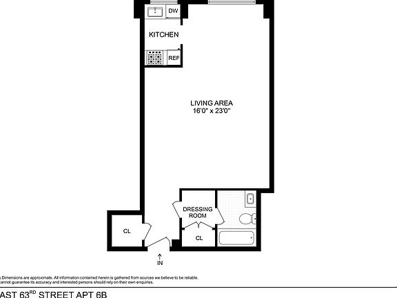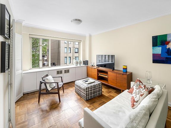 Quiet south facing space in well maintained condominium in prime East 60's location. Separate windowed kitchen, generous storage space, hard wood floors.