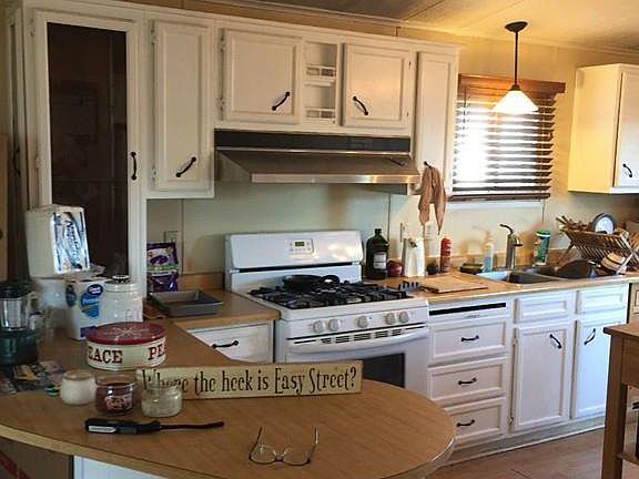 Pinehill Estates, a 55 and over community. Vaulted living room ceiling with slider to enclosed porch. Owner has replaced roof, windows, deck, hot water heater & furnace. Your finishing touches and TLC needed. Flooring and some sub flooring need replacing. Improved price, motivated seller! Kitchen island w/stools included in sale along with all appliances. Seller is packed. Live on Easy Street!