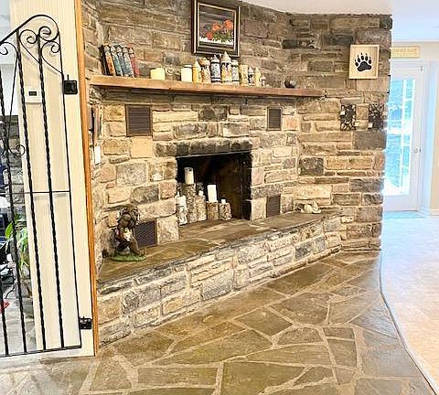 - Fireplace features: Double Sided, Stone, Wood Burning