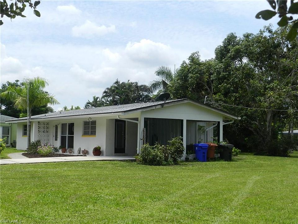 Spacious 3 bedroom, 2 bath Remodeled Turnkey Furnished Home on double lot (lot is dividable) New Roof 2017, fruit trees, 3 houses from the river. New paint, baseboards & doors. Eat-in kitchen, dark wood cabinets, granite countertops in kitchen, counter-height table/chairs, LED can lights, under-cabinet lighting in kitchen, black appliances with in-door water/ice, stainless-interior, dishwasher, convection microwave, solid surface stove/oven, stainless-steel double sink with pullout sprayer, garbage disposal. Off-kitchen laundry with stackable, full-size front-load washer/dryer. New leaded-glass entry door, covered front porch; combo living/dining room, large front windows; central air; terrazzo flooring. Florida room with granite computer workspace and jalousie windows, outside access to shaded patio. Kitchen/laundry door leads to open-end, covered carport with great shaded airflow & outside-entry, shelved utility room. Raised, detached shed for additional storage. Gardeners paradise; shade house and potting bench; mango, 3 avocados, orange, guava, pecan, banana and pineapple trees. Quiet established neighborhood.