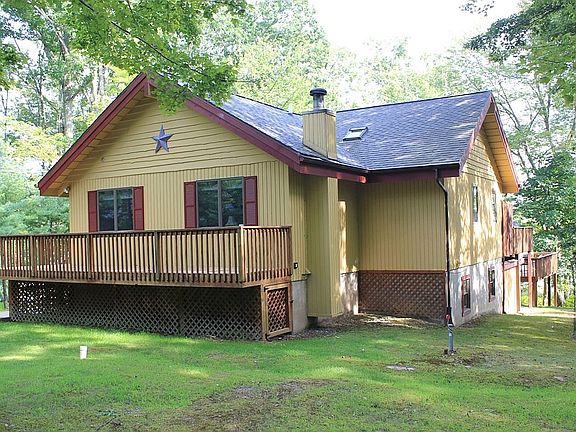 Picturesque Fawn Lake Lakefront - A private driveway leads you to this spacious lakefront home situated on a level, landscaped lot. The layout makes for easy entertaining with a spacious great room with fireplace, dining area & open kitchen. 5 bedrooms, 3 baths, cathedral ceilings throughout main level, multi-tiered decking, large family/game room in walkout lower level, screened porch, 1 car garage, level lake frontage, and much more! Incredible lake views, incredible price! Pontoon boat and Aqua Jump included in sale.