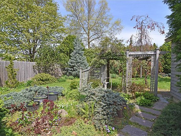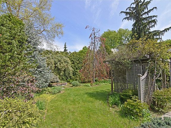 Garden lovers will truly appreciate this little oasis tucked away in the heart of the city – thoughtfully landscaped yard with pergola, surrounded by privacy hedges, and accented with beautiful mature growth, specimen trees. This charming bungalow, with numerous updates and improvements over the years, is impeccable and shows true pride of ownership. With a large primary bedroom suite on the second floor and two bedrooms on the first level, it offers great flexibility and privacy. The enlarged first floor bedroom features a wall of windows and sliding door overlooking a serene, natural backyard setting. The updated kitchen has a breakfast bar overlooking the backyard. The spotless basement with a fireplace and a bath is ready for your creative ideas. Upgrades and improvements over the years include a sunroom addition to back bedroom, efficient gas hot water furnace with on-demand hot water, new electrical service to house, and newer panel. An oversized two-car garage, with space for garden supplies and French doors to the backyard, has great future development potential.