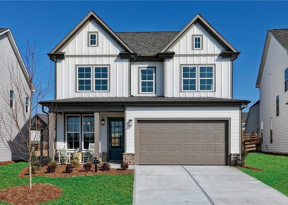 The DAVIS floor plan, a STANLEY MARTIN HOME, is located on HOMESITE 112. READY FOR SUMMER MOVE IN! You will enjoy being in a cul-de-sac for privacy and with 10 ft ceilings in your home, everything feels bigger and spacious! Great outdoor living space with a covered porch and deck overlooking your spacious back yard with great usable space. Enjoy your luxury amenities at Edgewater, beautiful Lake Cagle sunsets, and don't forget you are also a short distance from Downtown Woodstock, Canton, and Holly Springs.
