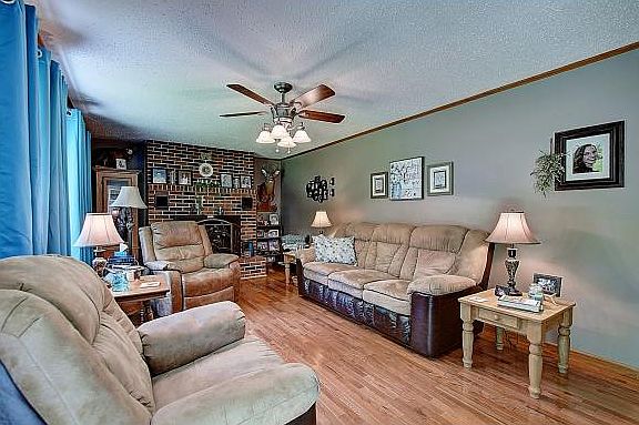 This immaculately kept home features over 2,100 square feet of living space and is nestled on a gorgeous 4.61 rolling acreage tract. This home and property offers wide range view of the mountains and countryside while maintaining a secluded setting. This home has been nicely remodeled and features a large living with hardwood floors and a brick fire place. The kitchen is spacious and features updated cabinetry, high definition laminate counter tops, and updated appliances. The dining room is directly off the kitchen and features ceramic tiled floors and leads to a large patio that has a covered and uncovered area. The upstairs features a Master Bedroom with an ensuite half bath. There are two additional bedrooms and a fully updated bath. The downstairs features a spacious laundry area in addition to a large handicapped accessible bath and closet area. There is an additional large room on this level that could be used as a den or additional Master Bedroom. Other features you will find with this home are an updated metal roof, replacement windows, an attached two car garage, and a two car detached garage with an additional carport. The surrounding acreage could easily be used to build an additional residence. You will find this and home and land offer a rare opportunity to own a pristine home and acreage at an attractive price. All information and square footage are subject to buyer verification.