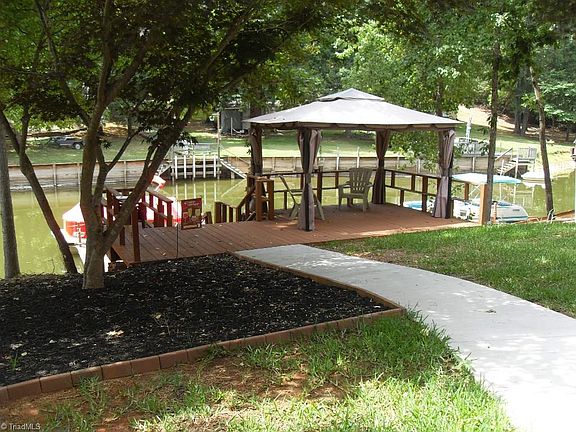 This lakefront home is ready for your entertainment of family & friends. Open living, dining & kitchen. Lower level game room with beautiful oak bar area and access to lakeside screened porch. Upper lakeside deck with access from Master bedroom. Paved drive & walkway to your private dock with additional lakeside deck. Storage building for lakeside toys. Perfect timing for the beautiful summer weather at High Rock Lake.