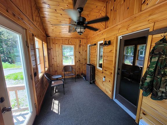 Located in rural Van Buren is a unique home within a completely private setting, located within 3 miles of town and the Canadian border. The home is a 2/3 bedroom property boasting natural light throughout the living area and over 2300 sq ft. Currently there are 2 double bedrooms, including a master bedroom with private bathroom, with the option of creating a third from an attic accessed from a stairway in the living room, or leave it open and use as an office, den or an open sleeping area. The living space itself is an open plan concept allowing you to appreciate the cathedral ceilings, stone chimney and natural heat that comes from the attached wood stove. Leading from the kitchen and living room is a heated sunroom set to the back of the home overlooking a spring-fed pond. The seller has advised that the local habitat includes a whole range of wildlife including the occasional visits from Moose, what a sight to behold when it visits the pond and you can watch from the comfort of your home. Set for winter the home comes with several heating systems, including oil fed boiler with dual fuel tanks and a boiler mate that serves the whole home; a wood stove in the living room, complimented by electric baseboard heater in the bedrooms and mud room, and an electric water heater; and an external wood boiler that is currently disconnected as not used. The home is also equipped with a generator hookup, just in case....... The land that comes with the home is a surveyed 134.59 acres, running over 5000' deep, starting from Castonguay Road, and is the only home on Gerard Drive, making it a private driveway measuring approximately 0.6 miles long. The property also has ATV and snowmobile trails throughout the land, giving easy connection to ITS 81. To view this home please consult with a real estate agent, viewings are expressly by appointment only.