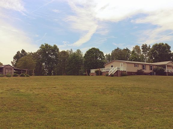 A beautiful modular home on 2.92 acres with large front and back yard. This home has plenty of room to accommodate a large family with 4 bedrooms, 2 full baths, living room, family room, dining room, kitchen and laundry room. Beautiful hardwood flooring and tile in most rooms along with crown molding throughout the house. Kitchen features beautiful wood cabinets, stainless steel appliances and breakfast bar. This home has many updates including new double pane windows, new tin roof and a new Rheem heat pump. Covered front porch and large wrap around deck great for entertaining or a quiet, relaxing evening watching the wildlife drink from the pond. Detached 2 car garage with car port, building for tractor or even a large boat, another building great for storage and also a storm shelter. Great home! Great price!