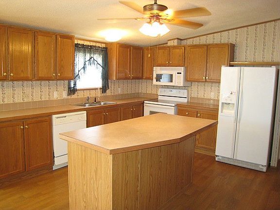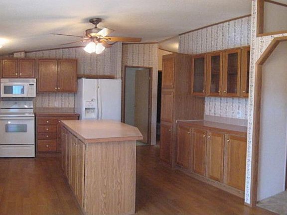 Super nice modular with great floor plan! The spacious Living Room has a pretty fireplace, and is partially open to the large eat-in Kitchen with plenty of oak cabinets, big island, and is fully applianced. The Master Suite has a nice size bedroom that can easily accomodate a king size bed, and the Master Bath has a corner tub, seperate walk-in shower, double sinks, and a huge walk-in closet. The second and third Bedrooms are located on the other side of the Living Area, and there is a seperate Laundry Room with an exterior door and 200 amp circuit breaker box. This home is on a cul-de-sac, and there is little traffic. There is a beautiful daylily garden in the front yard, a fully privacy fenced backyard with a large deck, a nice carport on the side, and aggregate walks, driveway, and steps. This is a very nice, clean home, and is ready to move into! Includes: Refrigerator, Stove, Microwave, Dishwasher, Washer and Dryer, all window treatment. Per owner: choice of Castle N or Boonville