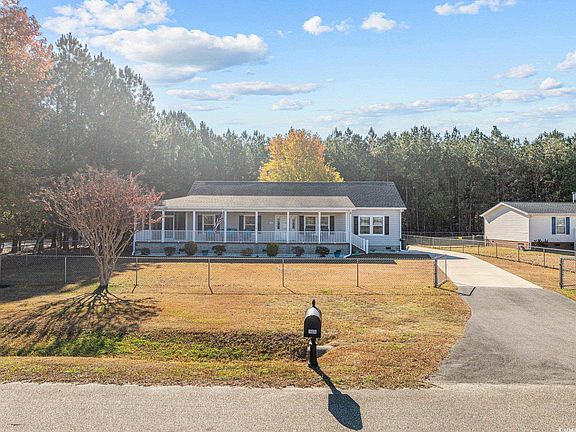 This beautiful home welcomes you from the minute you arrive with the spacious front and side porches fully fenced front and back yard, beautiful landscaping including mature blueberry bushes in the back and NO HOA. Modular construction with 2x6 exterior walls. Walk inside to a bright, open living area with engineered hardwood floors, 9 ft ceilings and crown molding throughout. The kitchen has a large pantry, new granite countertops new kitchen island, new single stainless sink and new custom backsplash. The dining area leads to the back yard and has built in blinds in the patio doors. The primary suite has a large en suite with a walk in shower and soaking tub and don't miss the amazing, oversized walk in closet. The house has 2 guest bedrooms, one with a murphy bed which is perfect for an office and guest space combined. The laundry room/mud room allows for great storage, has a door to the side screened porch and has access to the Versa Lift Attic Lift system (holds 250 lbs) to access the floored attic storage making storing items in the attic a breeze! There are pulldown over-sized metal stairs in the guest bedroom to access the attic after the lift is raised. The front load stacked washer and dryer convey. The In-Ground Propane tank (estimated at 200 gallons) is used for the gas stove, tankless hot water heater and Kohler whole house generator. This .51 acre lot has tons of space to store your boat or RV and there is a 30 AMP RV Receptacle. In addition, there is a 2 car detached garage (20x26) with 10x26 being a storage area with roll up door, eletrical outlets and gutters and two storage buildings. One of the storage buildings has a window air conditioner and an electrical panel making it a great space for a workshop. The crawlspace has concrete flooring and a dehumidifier. The current owner has cut OSB boards to use as hurricane shutters for every window. There is so much to see at this home...set up a showing today so you don't miss it! See attached list of features/upgrades for additional information.