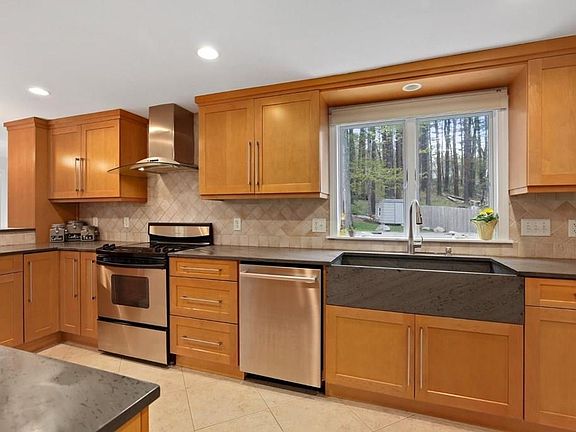 A thoughtfully updated Single Family home in North Reading town center, tucked away off the street abutting a wooded area and within walking distance to all schools! This beautiful home includes a Generous Master Suite with a vaulted ceiling, a Large Master Bath, Walk-in Closet, and French doors that go out to a Balcony overlooking the Private Backyard. This home also features tasteful updates such as hardwood flooring, heated floors, bedrooms with an abundance of storage space, a wood burning stove in the living room, and an eat-in kitchen - featuring stainless steel appliances and a farmers sink. Get ready to entertain in your large private backyard which features a deck or migrate down to your finished basement. Rest easy knowing that the house also recently installed new: Radon mitigation Unit (3/2019), Nest Thermostats (5/2019), and Septic System (11/2018). Don't forget to have a look at the 3D virtual tour for this home as well!