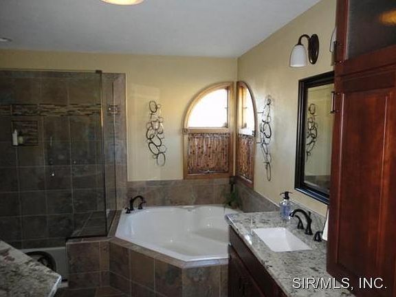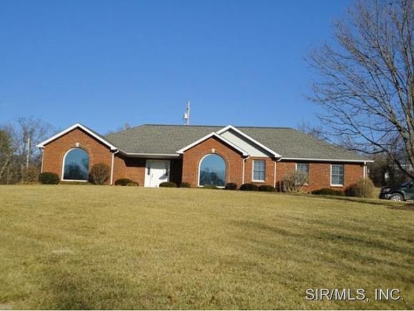 Call Kent Fisher @ 618-593-3730 for your personal showing. This well constructed brick combo ranch sits on 2.61 acres just south of Columbia. The 2 large arched windows accentuate the front of the house. It has 3 bedrooms and 2 bathrooms. The master bedroom suite is beautiful, including Hunter Douglas blinds, plus a 12 x 8 walk-in closet. The 2014 remodeled bathroom has a huge separate shower, corner garden tub and double sink to meet all your needs. The kitchen was remodeled in 2010 and includes granite counter tops. The living room has a full brick gas ventless fireplace. The sunroom off the back of the house includes a hot tub that is staying and just outside a 17 x 20 stamped concrete patio. There are Anderson windows and 6 panel wood doors throughout the house. Both the master bedroom and living room have vaulted ceilings. There is a full basement with a rough in for a bathroom.