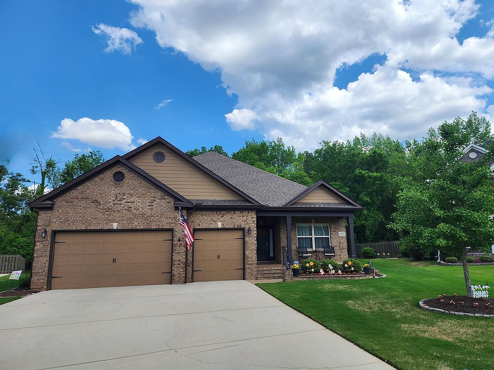 Wonderful floorplan for this 4 bed/3 full bath, one-level home. This full brick, 2,577 sq ft home was built in 2017 and has been immaculately maintained. Home is sitting on a .32 acre lot in a cul-de-sac. Features include a whole house air purifier, new Daiken gas heat system, 3-car garage, hardwood floors, 9 ft ceilings, custom wooden closet organizers, and tons of storage. Spacious kitchen offers a gas stove, walk-in pantry, breakfast bar and generous counter space & cabinets. Glamour bath w/huge walk-in closet. Enjoy the peaceful back yard from the screened porch, as the home backs up to a private community-owned wooded area. The attic area above the garage is floored for more storage.