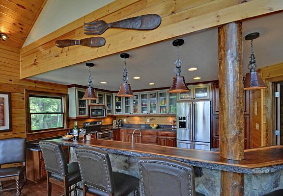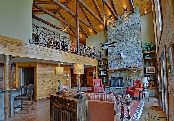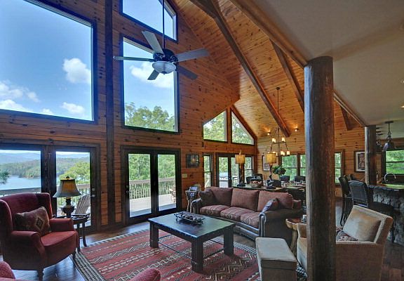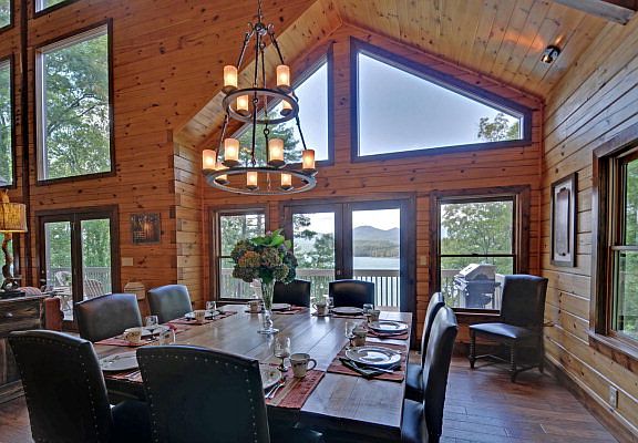 LAKE FRONT CUSTOM LOG HOME WITH UNBELIEVABLE VIEWS OF LAKE HIWASSEE AND THE NATIONAL FOREST MOUNTAINS,NO DETAIL IS MISSED,PROFESSIONALLY DECORATED,HICKORY WOOD FLOORS,OZARK STONE WOOD BURNING FIREPLACE IN LV RM,GAS FIREPLACE IN MRBD,SLATE MASTER BATH,JETTED TUB,1/2 BA OFF LV RM,MT LAUREL BANISTERS,LOFT W/OPEN TIMBER BEAMS,FULL WALL WINDOWS FOR MOUNTAIN/LAKE VIEWS FROM ANYWHERE,2 BD RMS & OFFICE W/INTERNET OFF LOFT,GAME ROOM,KITCHENETTE & BONUS RM IN BSMT,GRANITE IN BOTH KITCHENS, BLACK WALNUT BAR TOP BETWEEN KITCHEN AND DINNING ROOM. INCLUDES CUSTOM FURNITURE