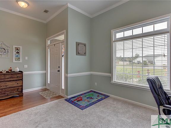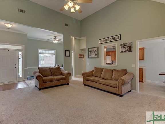 This beautiful brick 3 bed 2 bath split floor plan home is located on an amazing 1.25 AC lot in the South Effingham school zone! The gas fire place in the spacious living room is just waiting to be hooked up. Enjoy a cup of coffee or glass of wine in the sunroom while looking out on your private back yard oasis. Tray ceilings in the en-suite Master and double vanities, a separate garden/whirlpool tub and a tiled separate shower in the Master bath. The 30-year architectural shingle roof is only about 3 1/2 years old! Separate laundry room with an additional closet. Wonderful quiet neighborhood convenient to shopping and schools. Fenced yard and shed.