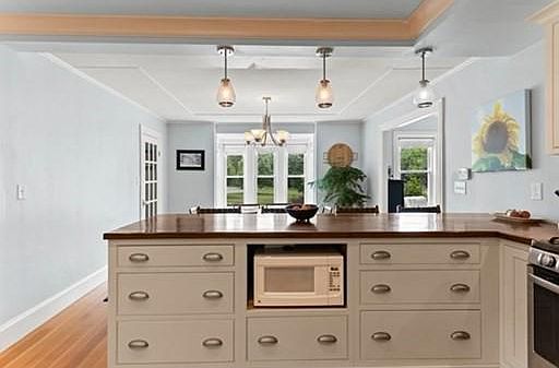 Lovingly maintained and beautifully updated New England Farmhouse with Detached Barn is set picture perfectly on 0.80 acres. The open floor combines the simplistic details of yesterday with all the modern conveniences of today. Remodeled kitchen is the gathering space & features off white solid maple cabinets, South American Cumaru countertops, Stainless Steel appliances, subway tiled backsplash, large peninsula with seating and pendant lights, farmhouse sink, coffee station and white oak floors. This space opens to the dining room with bay window with seat & oak floors. Front family room is a perfect area for entertaining. Amazing updated 1st floor bath with oversized shower; mutiple shower heads, marble subway tile, basketweave floor tile & quartz counters. Spacious Mudroom w/ closet. 2nd level w/laundry closet, remodeled bath & 3 bedrooms. Multi-level barn w/ parking underneath was completely rebuilt; art studio, home business or potential in-law some of possibilities.