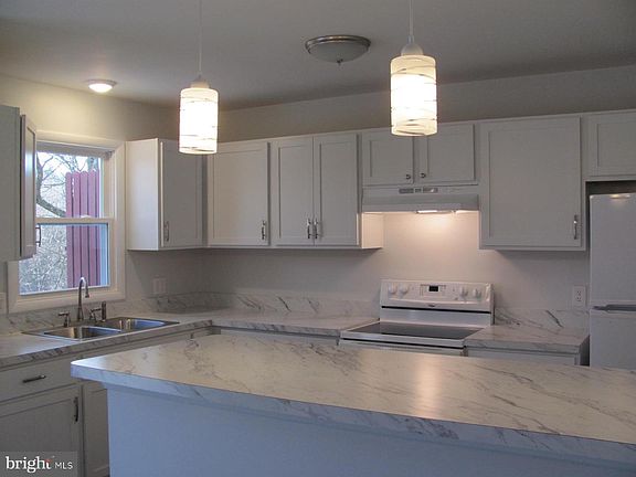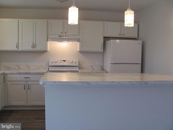 This middle unit brick Townhouse has been totally renovated....over 1300 total sf foyer w/hanging light....new carpet and hardwood floors..new carpeting in Living room with sliders to oversized deck....new Kitchen w/huge breakfast bar w/cabinets underneath for storage ... seating on both sides, hanging overhead lights...new white cabinets w/silver hardware..new window in Kitchen, new sink and hardware, flat top range and new refrigerator...full bath with new toilet, vanity and flooring...Bedroom has new carpet and ceiling fan....Finished lower level family room w/new sliding glass door which leads to newly painted deck ...2nd bedroom with new carpet and ceiling fan....new vanity,light, toilet and flooring....large laundry room with hardwood floor, dryer, new water heater, new ceiling and door to deck....totally painted... new electrical panel...new hot water heater....everything is done...move right in....call for a showing today