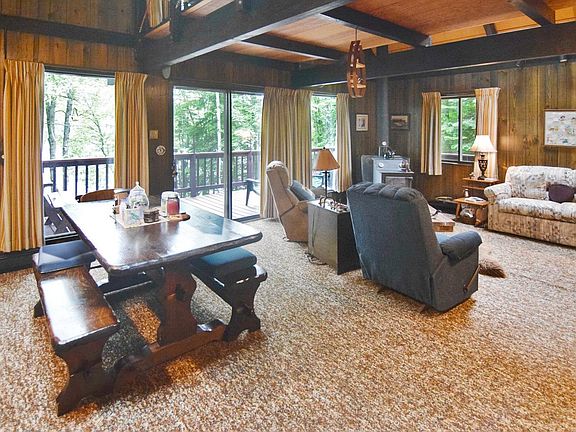 Charming lakefront home in the Mountain Lakes community could be the one you've been searching for. The exterior of this lovely home offers a wraparound deck and balcony that showcases a fabulous lake view, large dock (this will not be put in the water prior to transfer) plus a level grass area by the water's edge which is pure perfection! The interior of this home is just as inviting and has a floor plan that flows well. The main level provides open concept living with a well situated kitchen, dining area, living room with cozy wood stove, 2 well situated bedrooms and common full bath. The living room, kitchen and dining area on this level also boasts a cathedral ceiling and lots of glass highlighting the lake making the space feel very open and airy. The second level provides a generous loft/bedroom area with a wide catwalk of sorts to a lovely balcony. As a bonus, the lower walkout level of this home gives the opportunity for ample storage or perhaps additional living area with the glass sliding door that leads out to the front yard and lake. This home was built and loved by one owner for the last 48 years and it really shows! Reap the benefits of all the amenities this community has to offer which includes swimming pool, beach access, tennis courts, basketball court and more. This home is only 30 mins from Lincoln and a short drive to the conveniences of downtown Woodsville. The positives of this home just keep adding up! *SHOWINGS START JUNE 10TH 2023