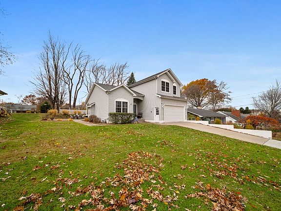 Welcome to this beautifully maintained 2009-built home offering 4 bedrooms, 2.5 bathrooms and a warm inviting layout designed for comfort and everyday living. Step inside to find vaulted ceilings and hardwood floors that create an open, airy feel throughout the main level. The kitchen features a convenient pantry and flows seamlessly into the open concept, perfect for gathering and easy entertaining. The first floor primary suite provides added convenience with its own bathroom featuring a jetted tub, creating a relaxing retreat within the home. Upstairs, you’ll find a versatile landing area ideal for a playroom or home office. The walkout basement offers even more potential for future living space or hobby areas. Outside, the home sits on a beautifully landscaped yard complete with a covered patio, a comfortable spot to enjoy the outdoors. The property is also within blocks to a nearby park and trail that leads down to the lake, adding to the overall appeal of the location.
