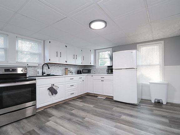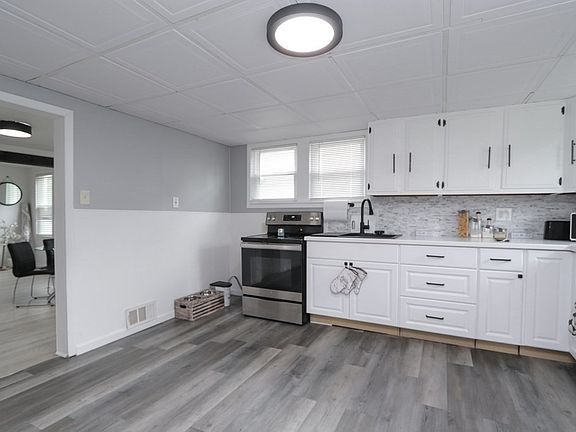 STYLISH UPDATES & LARGE BEDROOMS! Come check out this Cape-style home with updated finishes & plenty to offer; OPEN HOUSE SUNDAY OCTOBER 8TH 12-2PM! Head inside to the open living room layout featuring a custom wood beam, new lighting fixtures, and the new vinyl plank flooring that continues throughout the entire house! MODERN KITCHEN with white cabinets & counters, stone backsplash, custom sink and newer appliances. FIRST-FLOOR BATHROOM + MASTER BEDROOM! Large main-level bedroom with two closets and recessed lighting. Full bathroom includes new vanity, fixtures + floor. Upstairs features a spacious, open bedroom space with with built-in closet storage & plenty of options for different uses; play room, home office, second master suite, teen space, etc! Enjoy the outdoor space with TWO fully enclosed porches in front and back of house plus a fenced yard & gated driveway.