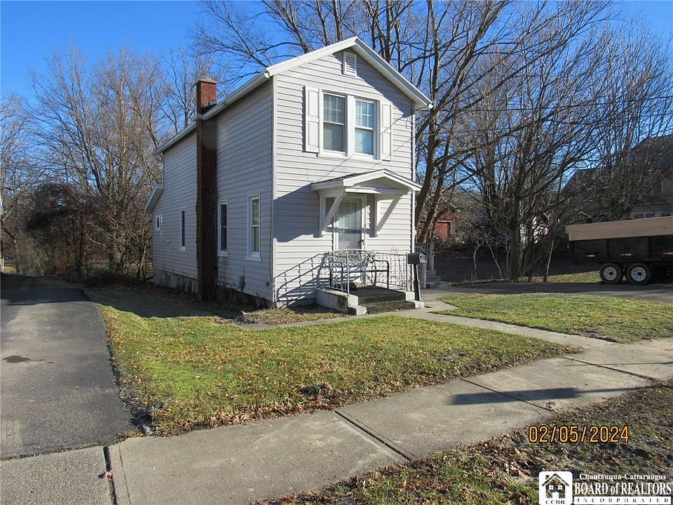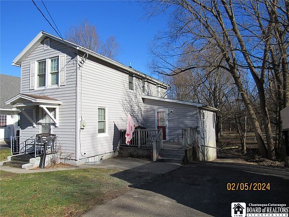 This home has all the conveniences that you are looking for. The first floor includes a large master bedroom, a bathroom that has a step-in shower, and laundry area. The second story has two bedrooms, and a full bath, making it convenient for all. The recently renovated kitchen has newer cupboards and dishwasher. The living room has newer laminated flooring. Vinyl windows throughout. Most recently, the seller replaced the heat ducts. The top roof is 5 years old, and the lower roof is 10 plus. A full dry basement adds to the storage area. As you step into the back yard you will see a small stream running through, that leads to the Canadaway Creek. Just minutes from the downtown business district, and Fredonia SUNY College. Newer dishwasher and stackable washer and dryer. All appliances are included. Delayed showings and negotiations until 02/13/2024, at 9am
