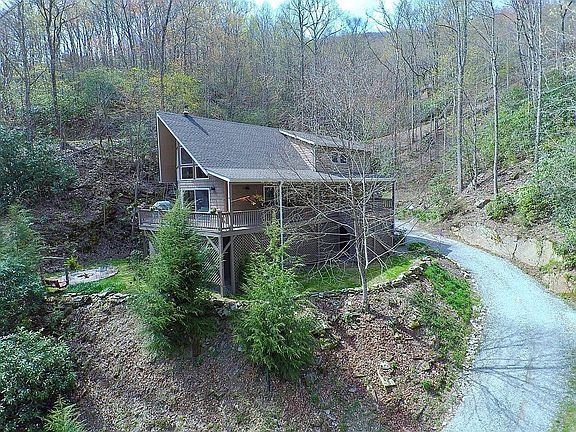 Located within a gated & private community you can experience delightful tree house effect with views of rhododendron, laurel, & hardwoods from every window! Begin & end your days on the 40 ft covered porch, on the open deck, or on your own private stone patio at the creek's edge with the sound of the cascades easing your cares. 3 level home features a vaulted ceiling with a wall of windows that create a light-filled gathering area. An open living, dining, & kitchen floor plan with master bedroom & bath on the main floor boasting soaking tub, dual vanity, walk-in shower. Upstairs you will find a bunkhouse-sized 2nd bedroom, XL bonus room, & full bath. Basement includes a 2-car garage with finished partially heated basement with lots of shelved storage, workshop, & hobby area. The walkout basement opens to a fire ring area with swing. Other features include a Vermont Castings woodstove, dual zone HVAC, hickory hardwood & tile floors, stainless steel appliances, & custom hickory cabs in the kitchen and solid wood interior doors. Low maintenance exterior & yard with mature plantings abound. Recent cement driveway with turnaround. This is an enduring home for every season.Perfect for vacation, retirement or year round living!