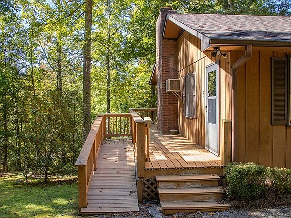 MOVE IN READY! 2 bedroom and bonus room, 3 bath home sits on a wooded and under-groved park-like .97 acre lot with easy paved access and concrete driveway. Single-level living in desirable Holly springs! Private yet close to town. This home features a 36x6 deck and a 36 x8 screened-in porch. Hardwood floors throughout upper level, brick wood-burning fireplace with unvented gas insert. Large kitchen with breakfast bar. The finished basement has a bedroom and living/play area along with a full bath and a large Cedar-lined storage closet Single car garage, water filtration system with booster pump for water pressure, washer & dryer hookup, and a utility sink.