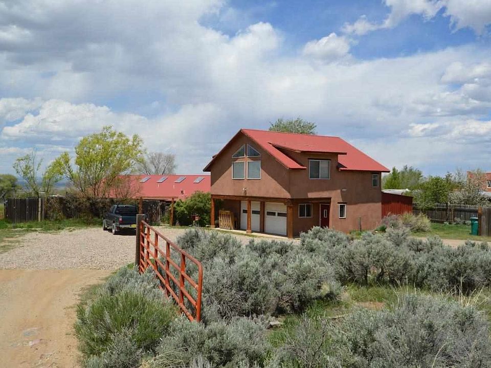 GOOD VIBRATIONS - 3BR/2BA 1914 sq.ft + 1BR/1BA 720 sq.ft studio territorial style home located near the Weimer Foothills. Full of natural light, passive-solar orientation, high vaulted ceilings, storage loft, skylights and an open floor plan. Custom woodwork, large butcher block kitchen island, southwestern finishes, built-in bookcases and many windows throughout. A large flagstone patio is accessed off the living room perfect for enjoying sunsets, barbecuing, relaxing in the views or for entertaining. Large parking area, oversize heated two car garage with half bath and laundry area is great for vehicles, storage, or as a potential workshop/studio. Upstairs is an inviting open 720 sq.ft. studio/guest house with full kitchen and bathroom. A private balcony overlooks Taos Mountain and a private fenced yard space below. The studio/guesthouse space has great income potential as a long or short term vacation rental to generate additional income or for personal use for guests, the arts, or exercise. Pastoral setting on 1.0 acre with water rights, private domestic well, water catchment tanks, dog run, garden beds, and a variety of trees. Many inviting outdoor areas to enjoy the green space perfect for families with children, pets, or livestock. Located 10 minutes from Taos plaza with convenient access to town.