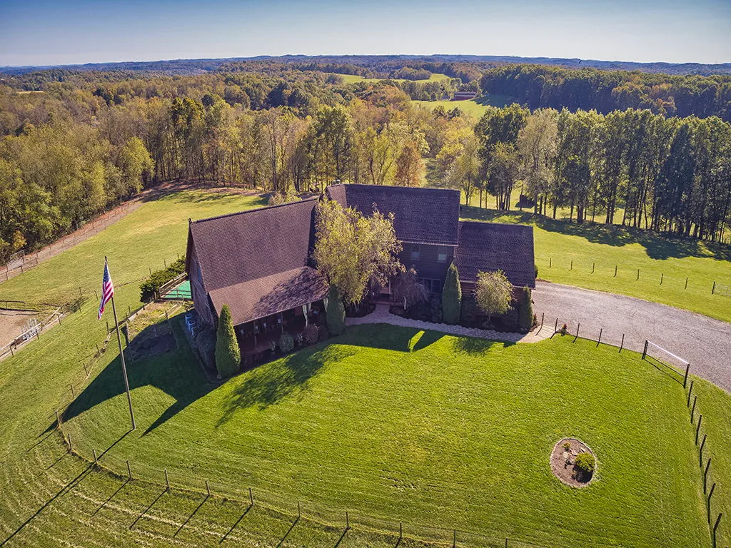 This Stunning 21 Acre Property Features: An Elegant 11,000+Sqft Log & Frame Home, Lush Fenced Pasture & Woods, 6-Stall Barn, Equipment Building, & a Riding Ring. Sprawling Front Porch has views up to 50 Miles away! Other Outdoor Amenities: Expansive Deck, Lower-level Concrete Patio w/Firepit, & Dog Play-area. This Beautiful Custom-built ...