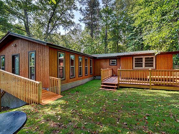 Just over the NORTH CAROLINA line. Literally stand in 2 states on the edge of your property line. This 3/2 home boasts hard wood floors a bonus studio apartment in the basement and a garage/workshop, all on a wooded private lot. Home has had numerous updates including entire kitchen update including appliances, new vanities in the bathrooms, new toilets, new roof 2020, new decks, new windows, and much more. This home is ready to entertain with a beautiful large 20x24 open room. Current owners used it as a game room for their children, but could be a personal art studio, dance space, band space, huge entertaining space. The possibilities are endless! Property is wooded and private with a semi-circle driveway. Workshop & Garage space under the house to store your tools and tinker to your hearts desire. Location is very convenient to Blairsville, Hayesville, Young Harris, Murphy & Hiawassee.
