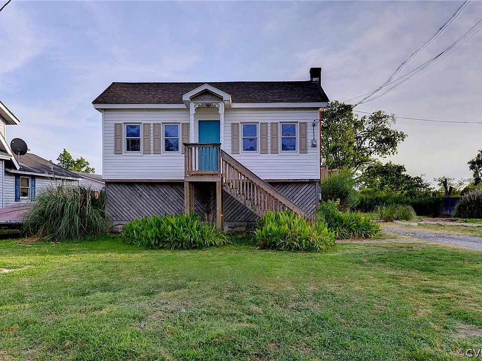Adorable updated Poquoson Bungalow with lovely views of the Plum Tree Island National Wildlife Refuge! A fantastic floorplan with a nice sized living room leading to the primary bedroom with ensuite bathroom with updated vanity and tiled shower. Two additional bedrooms share another updated full bath with tiled shower and newer vanity. The lovely eat-in kitchen features granite countertops, a gas range and matching white appliances, all with views of the refuge. Enjoy the side deck down to the sizable yard and amazing storage underneath the home! See this one first! Flood Insurance ~$320/YR