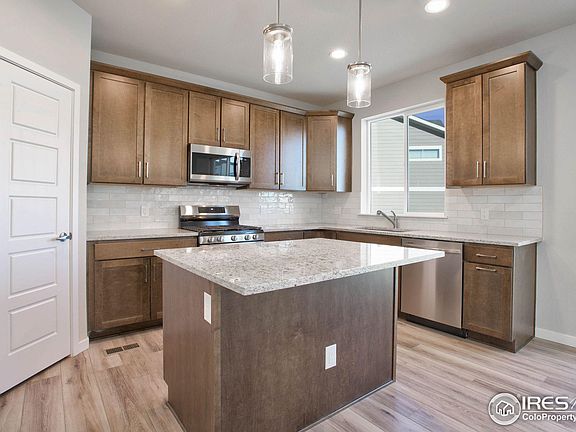 Charming new build home, on corner lot, in Superior's desirable Sagamore neighborhood. Enjoy easy access to nearby parks, nature trails, shopping, and top-rated schools. This energy efficient home (built with 2021 IECC standards, 95% high efficiency furnace, central air conditioning) features 4 bedrooms, 3 baths, office, and upper floor laundry. Kitchen features stainless appliances: (gas range, microwave, dishwasher), a 32" single bowl stainless steel undermount sink, granite counter tops, upgraded cabinetry, and a walk-in pantry. Gas Fireplace in great room. Both primary and main bathrooms have upgraded fixtures, tile and flooring, granite counters, and double sinks. Rough-in basement plumbing (shower, sink, toilet). Low maintenance landscaping with sprinklers and drip system. Exterior finished with cement-board fire resistant siding and Owens Corning class IV hail resistant roof.