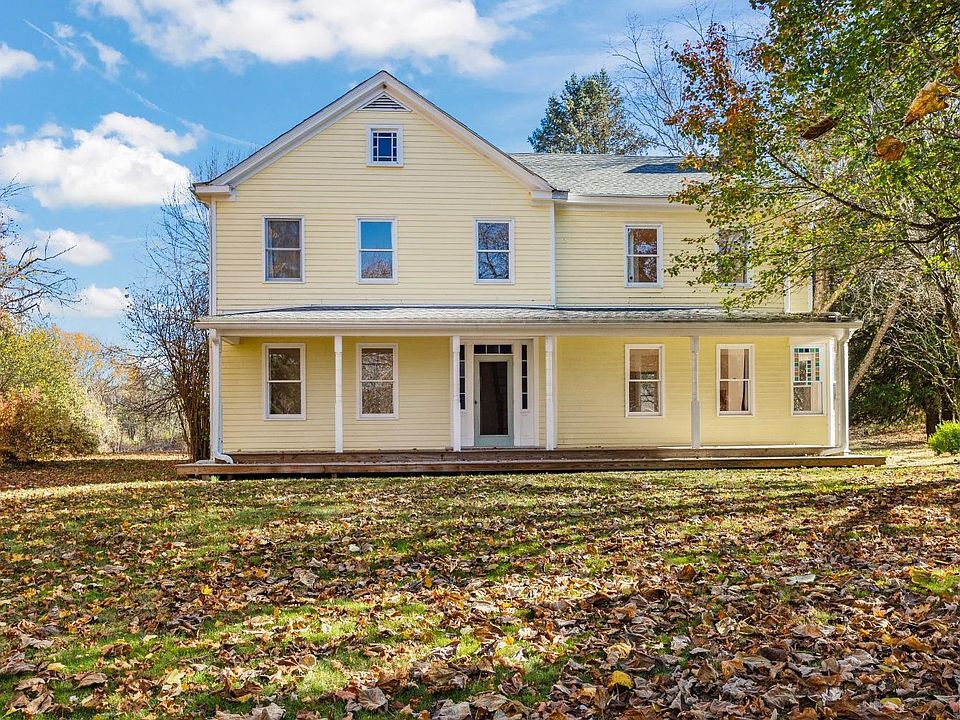 Meet 166 Moores Road, a classic country farmhouse with late 19th century origins set on 4.6 semi-private acres. This 5 bedroom, 2 bath center hall is sure to delight with its eye-catching original details, beautiful wideboard floors throughout, well proportioned rooms and so much more.The light filled first floor includes an entry foyer, living room with a stained glass bay window area and an art deco wood burning fireplace, modernized eat-in kitchen, formal dining room and front parlor. Front and back staircases lead to the second floor which boasts 5 bedrooms, an updated full bath and spacious center hall large enough to be used as an office/study. The covered front porch and open back deck are perfect places to relax, entertain or dine outdoors.Sited on a quiet country road the house is surrounded by picturesque mature trees, lawn & meadows. The property also includes a two story, 1600 square foot studio with vaulted ceilings on the second floor and a handsome hipped roof garage.Located in the southern most area of Clermont, just a few miles from Tivoli and Bard College and 10 minutes to Germantown.
