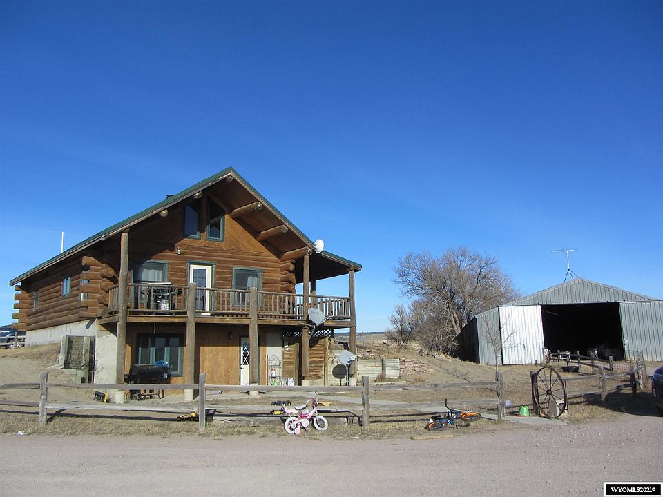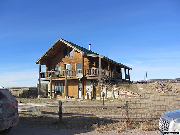 This log home is located on 40 acres at the edge of Newcastle, close to the Black Hills. The home has beautiful vaulted ceilings with huge log beams and lots of natural light. The main level has an open floor plan, kitchen has ample counter space, breakfast bar and dining area, cozy living room warmed with a wood burning stove. The loft can be used as a bedroom, office, sewing room...lots of options. The walk out basement includes the non-conforming master bedroom, large closets,
