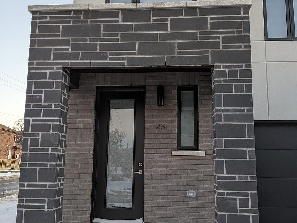 Corner-unit 3-bedroom, 2.5-bathroom townhouse featuring 9-ft ceilings and a bright open-concept layout. Modern kitchen with white cabinetry, stainless steel appliances, quartz countertops, and wine fridge. Spacious primary bedroom with walk-in closet and 4-pieceensuite. Second-floor laundry and unfinished basement for storage. Two parking spaces included. Tenant pays 100% of utilities. Convenient Hamilton location close to amenities and highway access.
