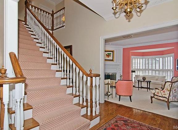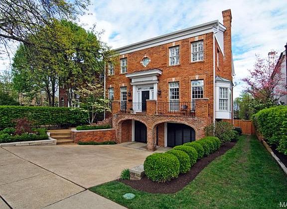 Showings begin by appointment Saturday, April 25th. Sophisticated townhouse style-home in the heart of Old Town Clayton. The sought after center hall floor plan provides an elegant aura for a first impression. The sunny kitchen and family room, plus a handsome wood paneled den with floor to ceiling bookcases, make everyday living a dream. There are three large bedrooms, each with their own baths and large closets, plus a perfectly located laundry on the second floor. The lower level boasts a large family room with three sets of French doors leading to a newly redone stone patio and architecturally elegant brick walls and trellised fence for a show stopping effect. With 5 fireplaces perfectly placed throughout the home... you will love every square inch of this superb design!