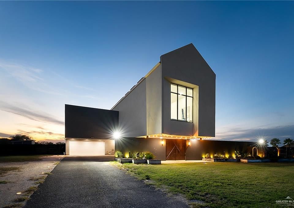 Welcome to this 2022 architectural marvel on 2.4 acres where luxury meets eco-conscious living. This estate boasts sleek lines, massive central window w/stunning views & every detail exudes opulence & innovation. Open-concept living floods the interior with an abundance of natural light & beautiful light fixtures illuminate after sunset. The kitchen is equipped with state-of-the-art appliances, floating shelves & enormous island. Primary suite is a massive haven of comfort with luxurious bathroom w/fogless mirrors, huge walk-in closet & sky-high ceiling. Private outdoor sanctuary has pristine pool & expansive covered patio perfect for al fresco dining & entertainment. Solar panels reduce your carbon footprint & energy bills. With 2.4 acres you have endless possibilities for gardening, recreation, or expansion. This extraordinary estate blends contemporary luxury & responsible living. Located in Bayview between Brownsville & Harlingen, 15 min to South Padre & easy commute to Space X.