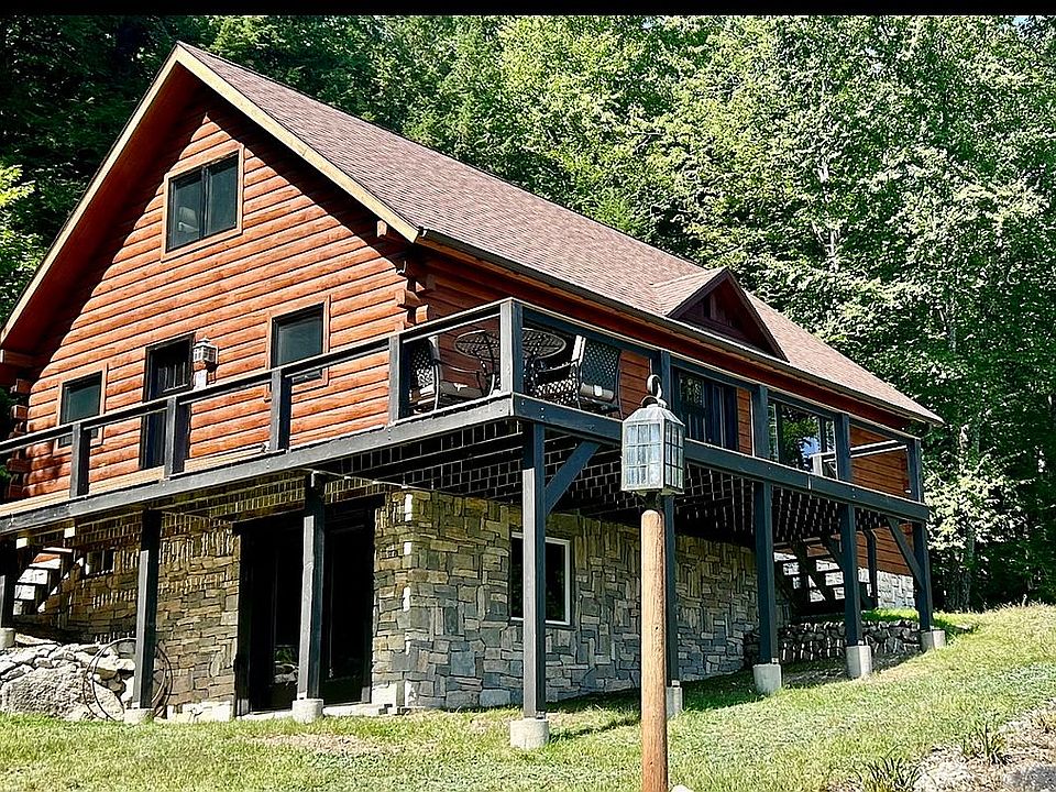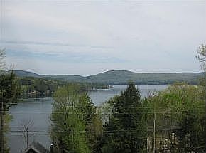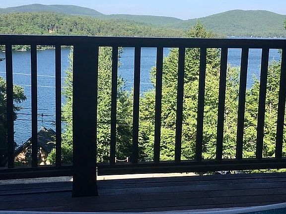 Breathtaking views of Merrymeeting Lake. This 2/3 bdrm log home is nestled in the woods. Spacious kitchen, large dining area, and deck for sunsets. Cathedral ceiling with woodstove. Private wooded setting perched on hill overlooking lake & mountain makes this a perfect retreat. Plus owned strip of waterfront.