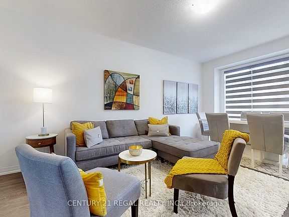 FREEHOLD - NO maintenance fees! This stunning 2-storey townhome features a modern, ONE-OF-A-KIND CUSTOM-BUILDER-MODIFIED floorplan, with an extra-wide foyer and soaring 9-foot ceilings on both levels, offering a spacious and open feel throughout. A true gem with thousands spent in upgrades, including a large eat-in kitchen which includes stainless steel appliances, upgraded cabinetry, quartz countertops with undermount sink, a massive island, and breakfast bar perfect for both everyday meals and entertaining. The open-concept great room and dining area feature floor-to-ceiling windows that flood the home with natural light. Convenient main floor access from the garage through a large mudroom, with EV rough-in, rough-in for exterior security camera and upgraded electrical panel in basement. Upstairs, an elegant oak staircase leads to a spacious second floor, with each bedroom offering large modern windows. Your primary bedroom is your personal retreat, featuring a tray ceiling, oversized walk-in closet and luxurious 5-piece ensuite featuring a large glass shower, soaker tub, and double sinks for added luxury and convenience. The spacious basement includes upgraded large windows, and a cold cellar, providing incredible potential for additional living space and your custom touch. Enjoy added peace of mind with structural coverage under the Tarion Warranty for years to come. Located just minutes from Hwy 401, 412, 407, GO Station, shopping, gyms, and top-rated schools, this home combines convenience with luxury, and location seamlessly. A rare opportunity to own a ONE-OF-A-KIND custom-modified, move-in-ready and thoughtfully upgraded home in a prime location. Book your showing today!