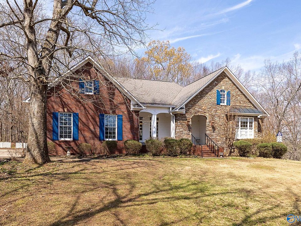 With the forest as your view, sit on the large, covered back porch and enjoy the birds' songs as you sip your morning coffee. The view continues from the breakfast room and of course the living area with it's crown molding and fireplace is bathed in natural light from the wall of windows. A formal dining room, that could be your office, is just off the kitchen. Two great sized guest bedrooms with walk in closets are divided with a full size guest bath. Across the home and isolated is the primary suite - a large space with private french doors onto the back porch. The hidden gem of this property is the HUGE basement/workshop/storm shelter - you HAVE TO see this one!
