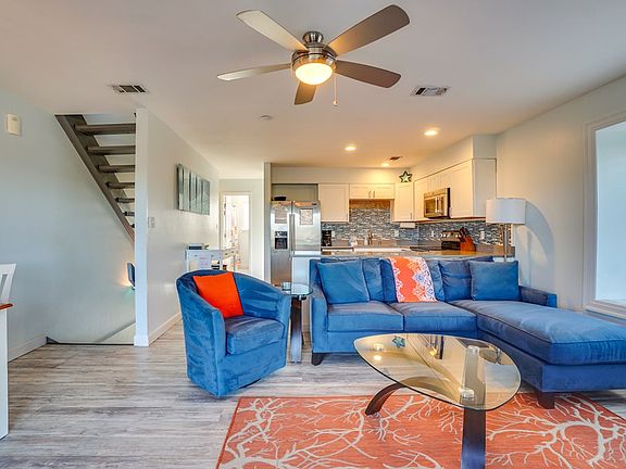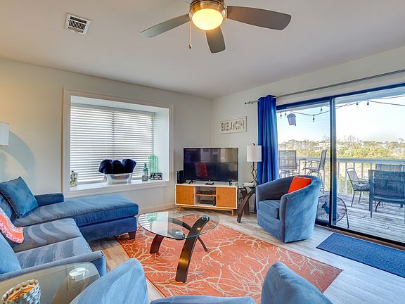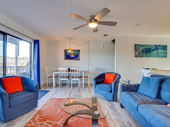 3 BR/3BA newly renovated townhome in exclusive Barrier Dunes. This townhome has been completely remodeled with all new flooring, new furnishings, new kitchen, all new appliances. Fresh, airy and beachy is what you feel when you enter this home, the dining area and living area are very spacious and the window seat gives additional light. The oversized open deck is just off the living room and has a grill and additional seating. The kitchen is stunning, complete with new cabinets, countertops, tile backsplash, and stainless appliances. There is a bedroom and bathroom on this level. The master bedroom is on the second level and has a king bed, private bath w/tile shower, and private deck with bay views. The washer/dryer are located between 2nd and 3rd bedroom. The second bedroom has a queen bed, balcony and private bathroom. A MUST SEE!!!!