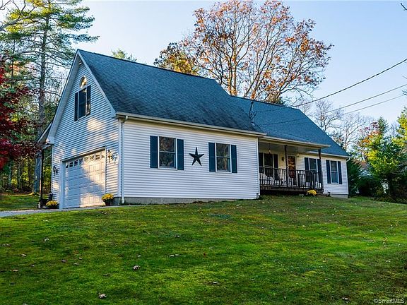 Say "HELLO" to a "GOOD BUY!" This one owner lovingly cared for 3 bedroom, 2 bath Cape offers fully applianced kitchen with granite counter tops, pantry & hardwood floors. Adjoining informal dining also has hardwood flooring and slider that leads out to deck for ease of outdoor entertaining. Hallway with hardwood flooring leads to 2 large bedrooms on 1st floor which are a great solution for your guest problem or relocating the master bedroom to main floor. Main full bath has new tile flooring & new toilet. Carpeted living room has direct access to front porch where you can relax in the fresh air while having your morning coffee or a cocktail in the evening! Master bedroom on upper floor has a suite like feel with privacy, cozy sitting area and full bath with new stylish shower. The unfinished space on the 2nd floor is ready to be completed & utilized to offer an additional 600 square feet to the existing 1642 square feet. Oversized 23 x 24 oversized 2 car attached garage will comfortably fit a full sized pick up and still have room for "toys". New roof in 2008. Lovely country feel, but not isolated. Minutes from the state forest for hiking, fishing, mountain biking, kayaking, swimming, camping etc. Centrally located in Voluntown. 30 minutes to Rhode Island beaches. Routes 165 & 138 are less than 5 minutes away as is the Rhode Island border.