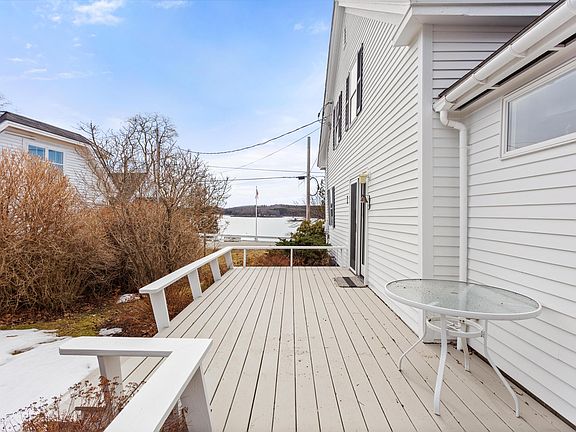 Castine village: 166 Perkins Street: Quintessential Antique Cape with back ell and garage located in the heart of the village. Cozy and charming year round home with 6 working fireplaces, some original wood floors, and many antique details still intact. The floor plan offers single level living and works well for visiting family and friends. Newer primary suite in the back ell features first floor bedroom with large walk-in closet and full bath . There are glass doors leading to the deck and the staircase leads to private second level study with its own balcony overlooking the water. In the front of the cape, there are three bedrooms on the top floor, including another bedroom suite overlooking the harbor with dressing room and full bath, a bedroom overlooking the water with fireplace and a shared hallway bath. The main level features eat-in modern kitchen with stainless appliances, fireplace and glass doors leading to spacious side porch with harbor views, formal dining room with fireplace, front parlor with fireplace and built ins, family room with fireplace and built-ins, and light filled office with floor to ceiling bookshelves which leads to private back patio. Established plantings and gardens. This is a must see! $985,000.