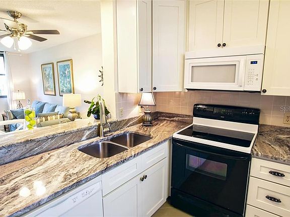 THIS IS YOUR OPPORTUNITY to live in an 88 ACRE AUDUBON SANCTUARY with only an 8 mile drive to the soft sand GULF OF MEXICO BEACHES to go swimming in the surf! Want AFFORDABLE LUXURY in the SUNSHINE STATE? Here it is! As you enter into the PAVER BRICK COURTYARD you immediately notice money has been spent on tasteful and upscale IMPROVEMENTS. This continues on through the front door as you will be in awe of the beautiful porcelain tile floor though out. The NEWLY REMODELED kitchen, with the walls taken out to offer an OPEN FLOOR PLAN, is highlighted by upgrade level granite that is complimented by the new coastal designed cabinets. The DESIGNER INSPIRED knobs add a whimsical touch! The washer and dryer are handy in the kitchen utility closet. There is plenty of room for a bistro table/chairs, chef's work cart or bar stools! The open concept in the perfectly sized living room/dining room combination has plenty of natural light and view of the beautiful TROPICAL GROUNDS that is maintained with your low condo fee. This GROUND FLOOR unit offers plenty of "LIVING" space because the lanai has been turned in to a family room by taking out sliders. This fabulous room offers a peaceful view of the fountain in Spring Lake. The large closet would be perfect for a hide away bed for your occasional guests, a private desk or craft center! LIVE LARGE again with oversized master bedroom that accommodates lots of furniture and huge 9x7 walk in closet. The en suite master bath follows the attractive COASTAL DESIGN influence! Wildewood Springs (NOT A 55+ COMMUNITY) (PET FRIENDLY!) has friendly/helpful on site management and landscaping staff. They maintain the buildings and 7 heated swimming pools including a lap pool, hydrotherapy SPAS, tennis/pickleball courts, walking trails and beautiful tropical landscaping. The 9 lakes are open water access for fishing from the banks. Kayak racks on property. The FLORIDA LIFESTYLE doesn't end at your own piece of paradise. Take a short drive to ANNA MARIA ISLAND to watch the green flash sunsets from the tiki hut restaurants or to take the trolley to the beachy boutiques for fun shopping. This location is CONVENIENT to Ringling Museum, marinas, the arts/entertainment districts of Sarasota or Bradenton Riverwalk, all the fine dining/fast food favorites, movie theatre, bowling and shopping including world renown St. Armand's Circle. You are close to SRQ airport, Img Academy, hospitals and doctors offices. Interstate 75 is nearby for trips to Orlando's DISNEY WORLD or UNIVERSAL STUDIOS, Tampa or Naples. THE TIME IS NOW! BUYING beats out renting!